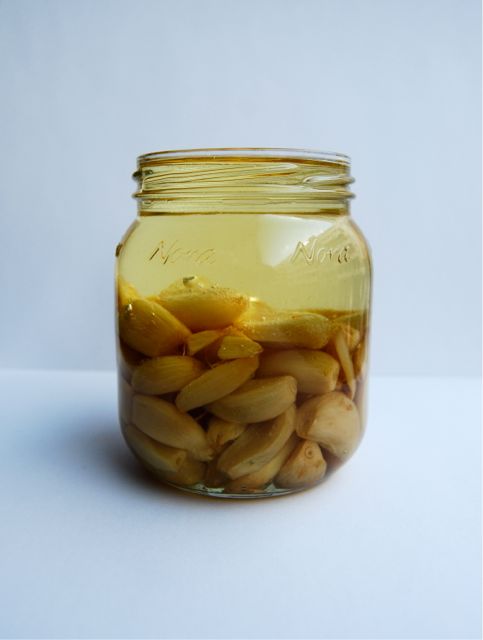 Kjærasten og eg har nok eit høgare forbruk av kvitlauk enn vanleg. Og ein av tinga me synst er både himla praktisk og himla godt er kvitlauksconfit. Kvitlauksfeidda kokar du på låg varme i olje som gjer at dei vert mjuke og nesten søte på smak. Fedda kan brukast i potetstappe, eller du kan smøra dei på ein pizzabotn eller bruschetta, og olja kan du bruka i salatdressing, til steiking eller til marinering av kjøt eller kylling eller fisk for den saks skuld. Eg synst dei er sjukt gode å bruka til å laga til dømes kvitlauksbrød. Det er så godt det! Eg lovar deg at både olja og kvitlauken forsvinn raskt! Og ikkje er det vanskeleg å laga heller.