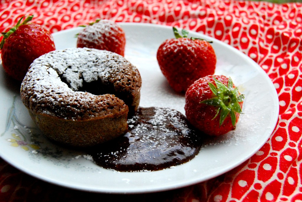 Pisk eggedosis, smelt smør og sjokolade og rør det inn og sikt til slutt i kveitemjøl. Ha i seks smurte former eller muffinsformer og steik i om lag 7 minutt på 210 grader.