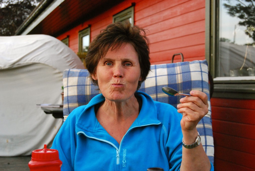 Her er mi brune og freshe mor. Fan av både grillmat og steikte eple.