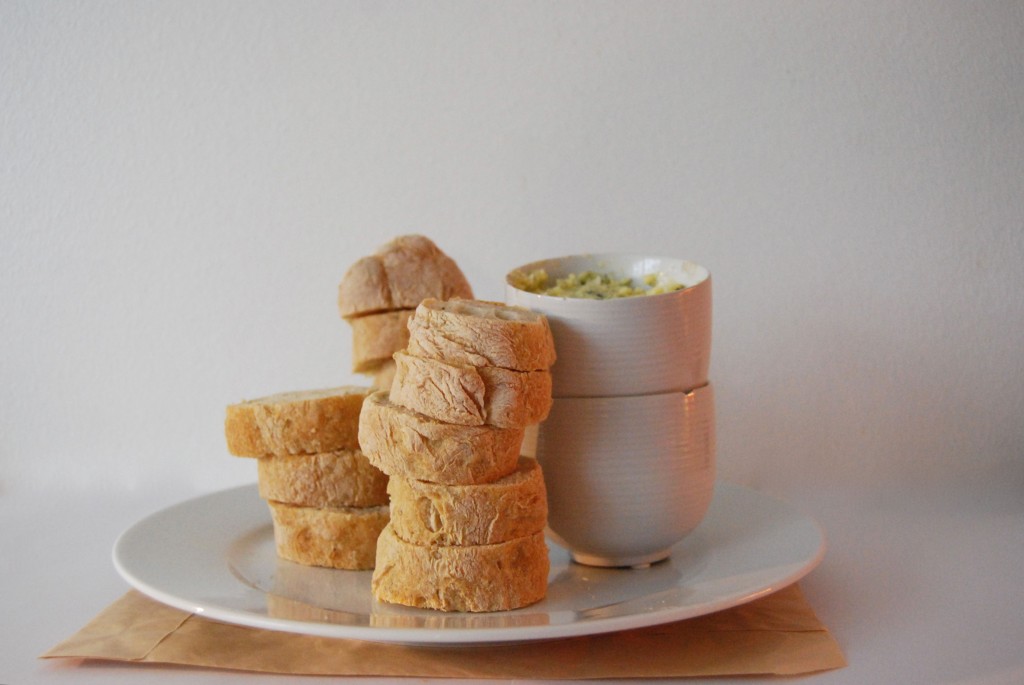 Det er fredag og ute pøsregnar det og det tordnar. Ingen invitt til parkgrilling eller piknik i allefall. Så det er ein bra dag for å kosa seg med killergode baguettar med urtesmør til formiddagsmat.
