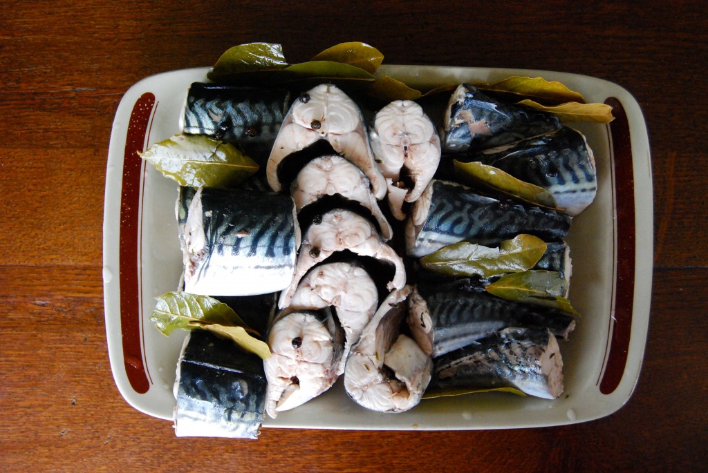 - ein makrell per person (litt avhengig av storleik), skore i 3-4 cm breie stykker
