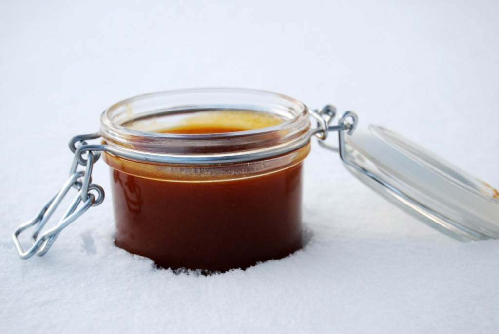 Det er niande desember og liksom litt på tide å få kome i gong med julegåvene. Særleg sidan me reiser heim til der eg kjem frå ei vekes tid mellom 12. og 17. desember så må alt som skal sendas vere sendt før me kan reisa. I dag har eg lagd flytande og seig karamell til bruk som karamellsaus over is, karamelltilsetting i is (kjem! himmel og hav!), fyll i konfekt og litt anna som kjem etter kvart. Karamellen held seg i nokre månadar, og er berre glimrande som julegåve i seg sjølv, eigentleg.