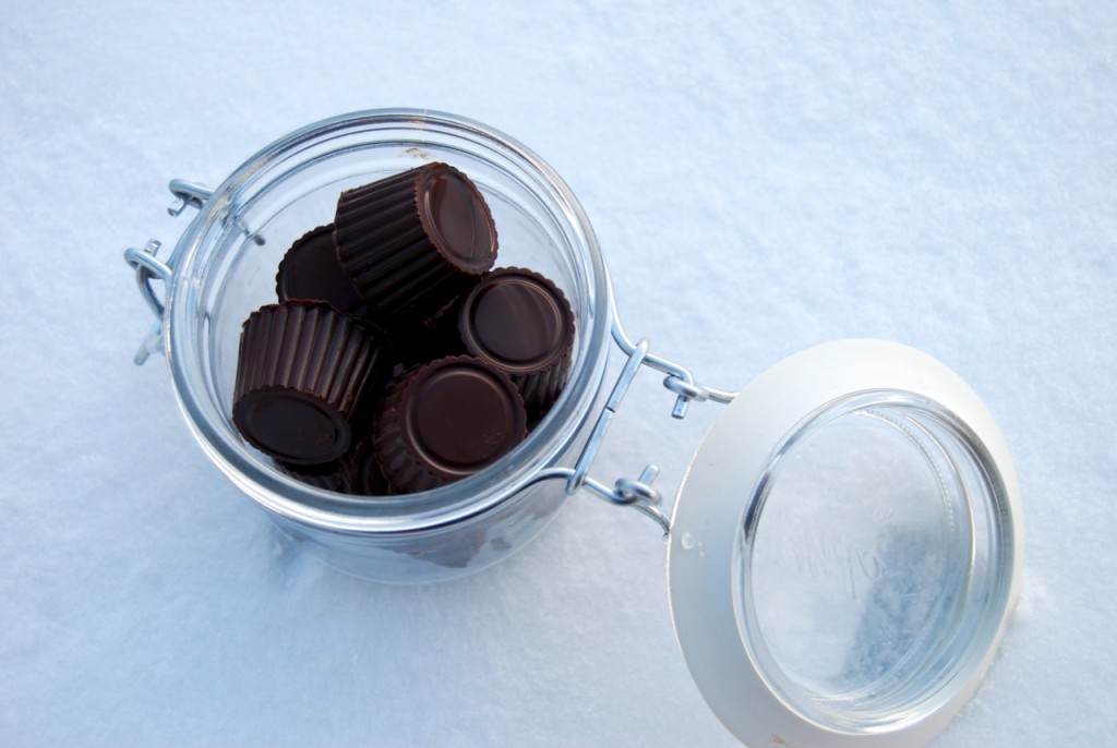 Systera mi og eg tolte ikkje sjokolade då me var små, men når me var på fjelltur med bestemor fekk me sjokolade likevel (ikkje sei det til mor eller far) og det var sjukt stort. Etter det har det liksom høyrt litt med med smil og sånt på tur. Eg elskar verkeleg blandinga av den litt salte karamellen her og sjokoladen rundt, og sjølv om det ikkje kjem fram på bileta så er karamellen flytande. Det er glimrande. Du treng nokre former, gjerne silikonformer, i kva enn form du vil, og så treng du sjokolade og noko å fylla dei med, her er det altså karamell: