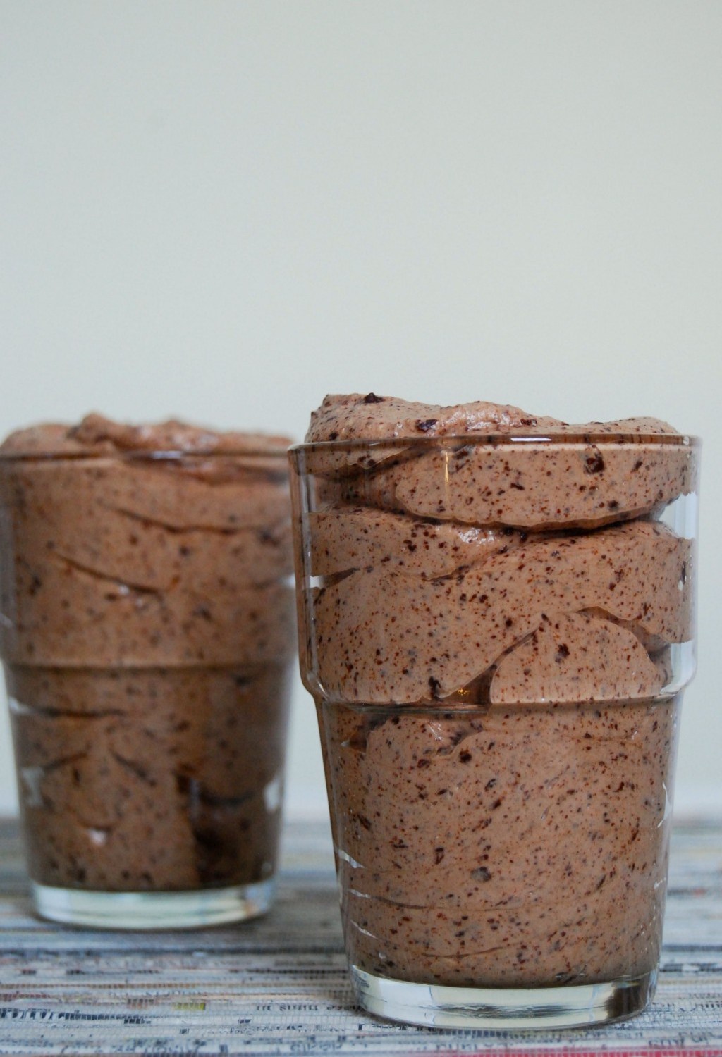 Smelt sjokoladen over vassbad. Eggekvitene pisker du til luftige saman med sukkeret, og fløyten visper du til luftig krem. Plommene visper du saman og rører inn i sjokoladen. Vend så inn marengsen, og bland til slutt inn den piska kremen. Ha massen i glas og set det kaldt så det set seg før servering. Eg hadde i litt finriven sjokolade i tillegg.