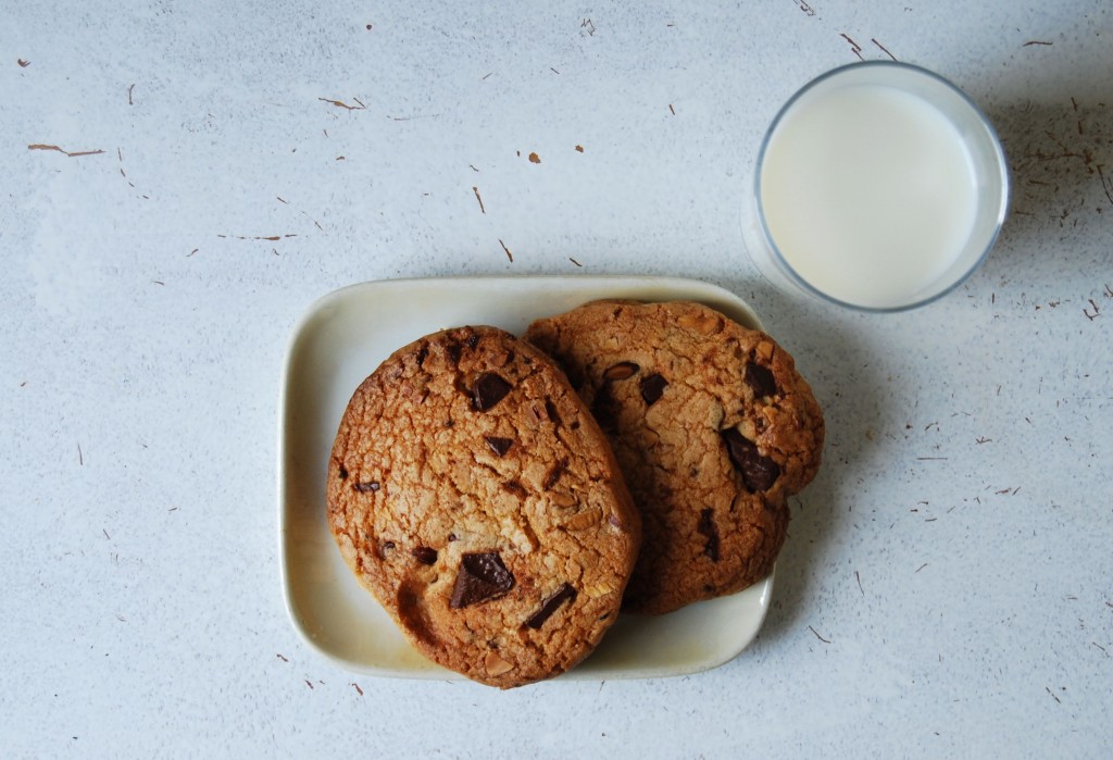 Steik dei i om lag 15 minutt ved 190oC til dei er lett brune. Avkjøl på rist og drikk dei med mjølk.