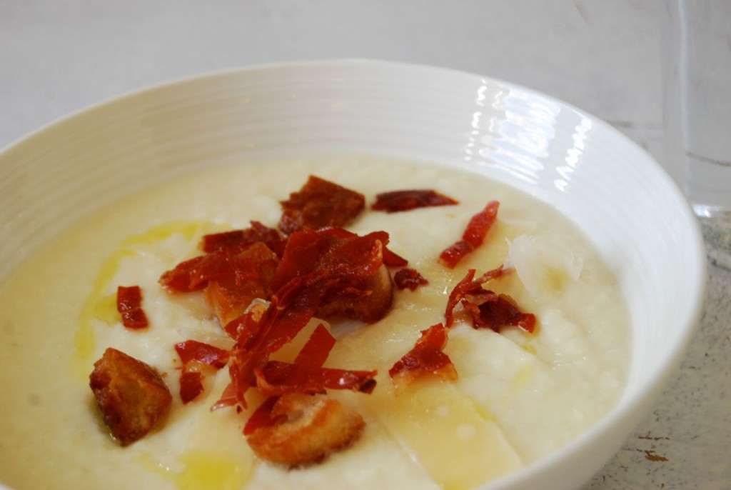 Ha suppa i skåler, og ha på brødterningane, spekeskinka og høvle på litt parmesan. Ringle over litt god olivenolje. Server med litt brød.
