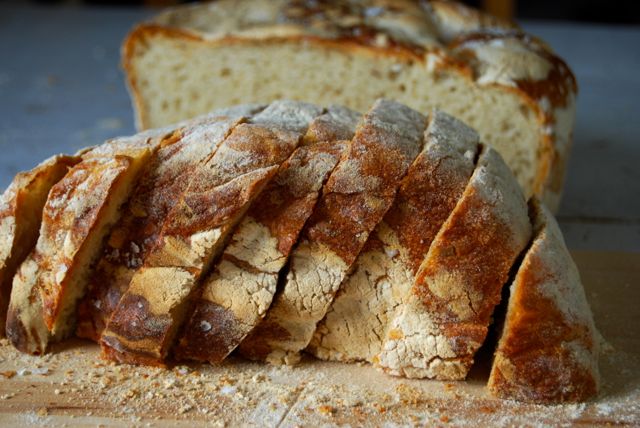 Steik i 30 minutt (på nedste rille), og ta så av lokket og steik 15 minutt til, skru ned varmen til 220 grader. Ha brødet på rist og la det avkjøla seg før du skjærer i det. Oppbevar det så i eit kjøkkenhandle og ikkje i plast, for då blir skorpa mjuk og litt trist.