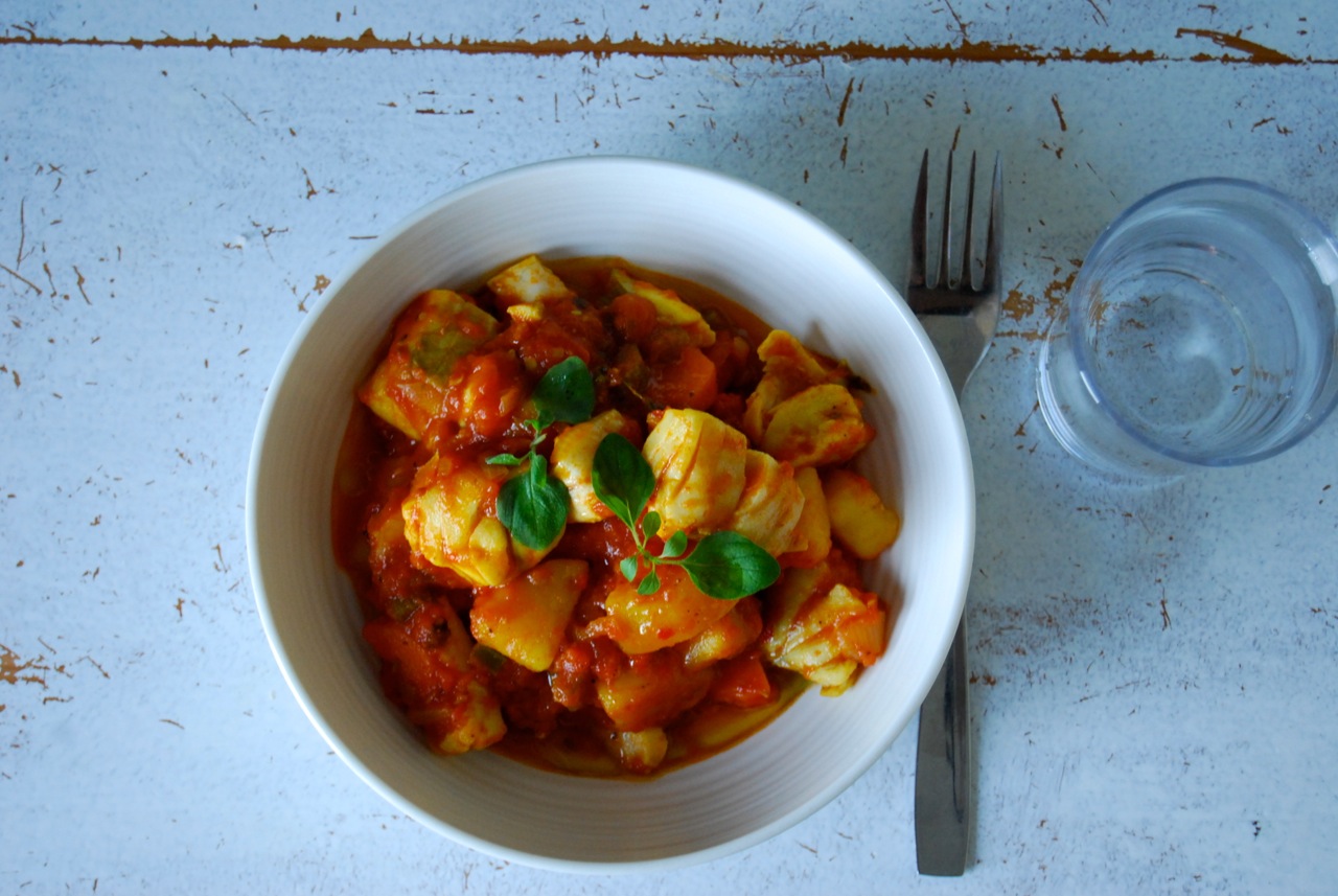 Det er lett å bli himla tradisjonell når ein skal ha fisk til middag: Trekt torsk i lettsalta vatn med poteter, gulrøter og smør eller laks med agurksalat etc. Eller fiskepakke og stekt fisk, eller kanskje fiskegrateng eller fiskekaker. Kanskje stoppar det der. Men det er jo meir enn det som er godt med fisk! Til dømes er det knallgodt med fiskegryter av ulikt slag, litt sterke tomat- og chiligryter med masse smak og krydder kan vere eit forslag. Viss du vil har du ikkje potet oppi, men couscous ved sidan av. Eller noko heilt anna.