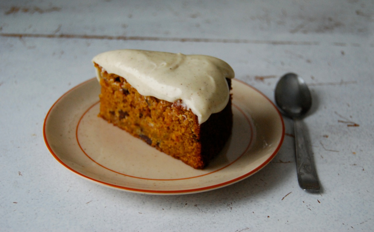 Det er utruleg godt med gulrotkake. Enkelt er det og, det einaste er at det er litt keisamt å riva gulrøtene. Viss du har flaks har du kanskje foodprosessor med rivefunksjon – eg berre riv det for hand og tenkjer det er godt for karakteren eller noko. Så no, etter gulrotkake til frukost, skal eg ta med meg feberen min og kanskje få skrive ferdig denne masterskissa.