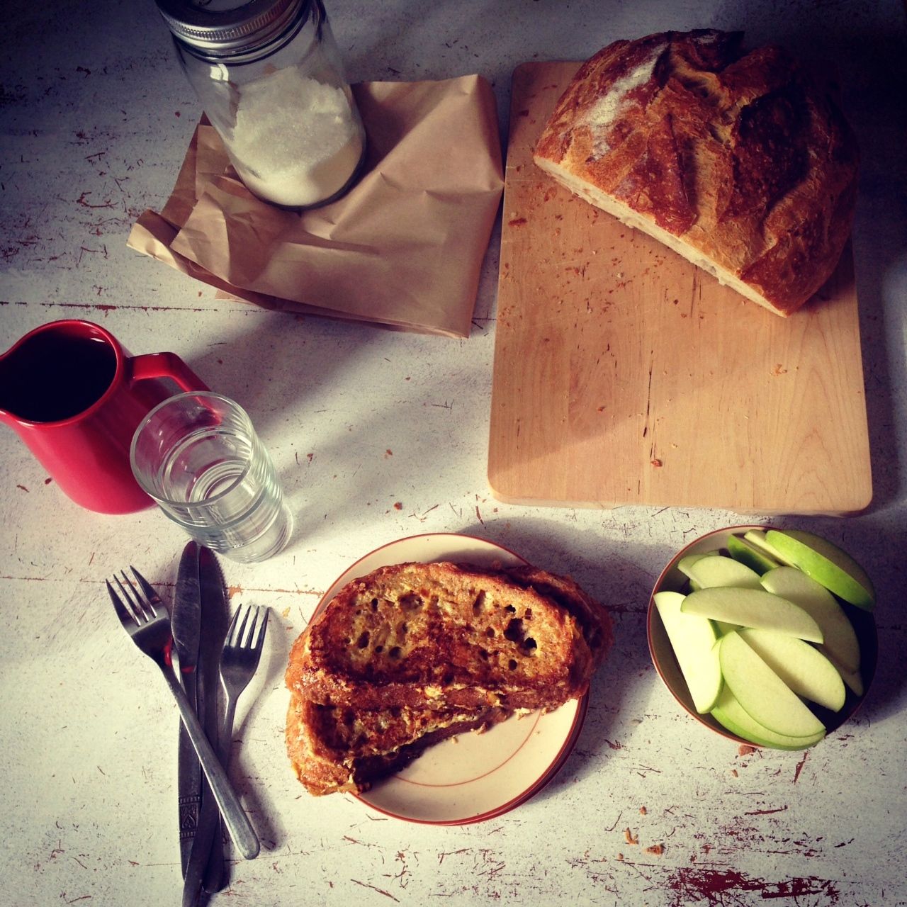 - server med sukker/kanel/syltetøy/noko anna du vil ha