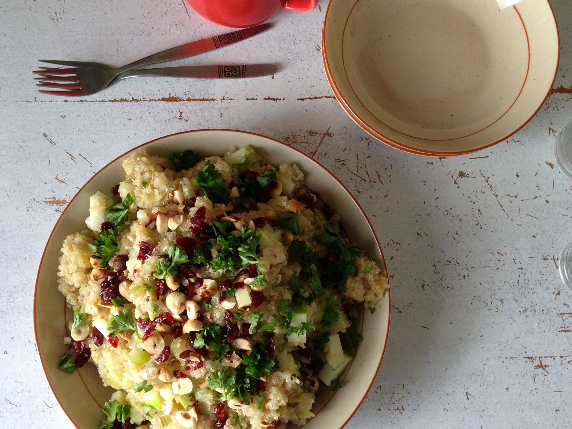 Skyl quinoaen godt i kaldt vatn. Kok så opp, og kok i lettsalta vatn til han er ferdig kokt. Avkjøl.