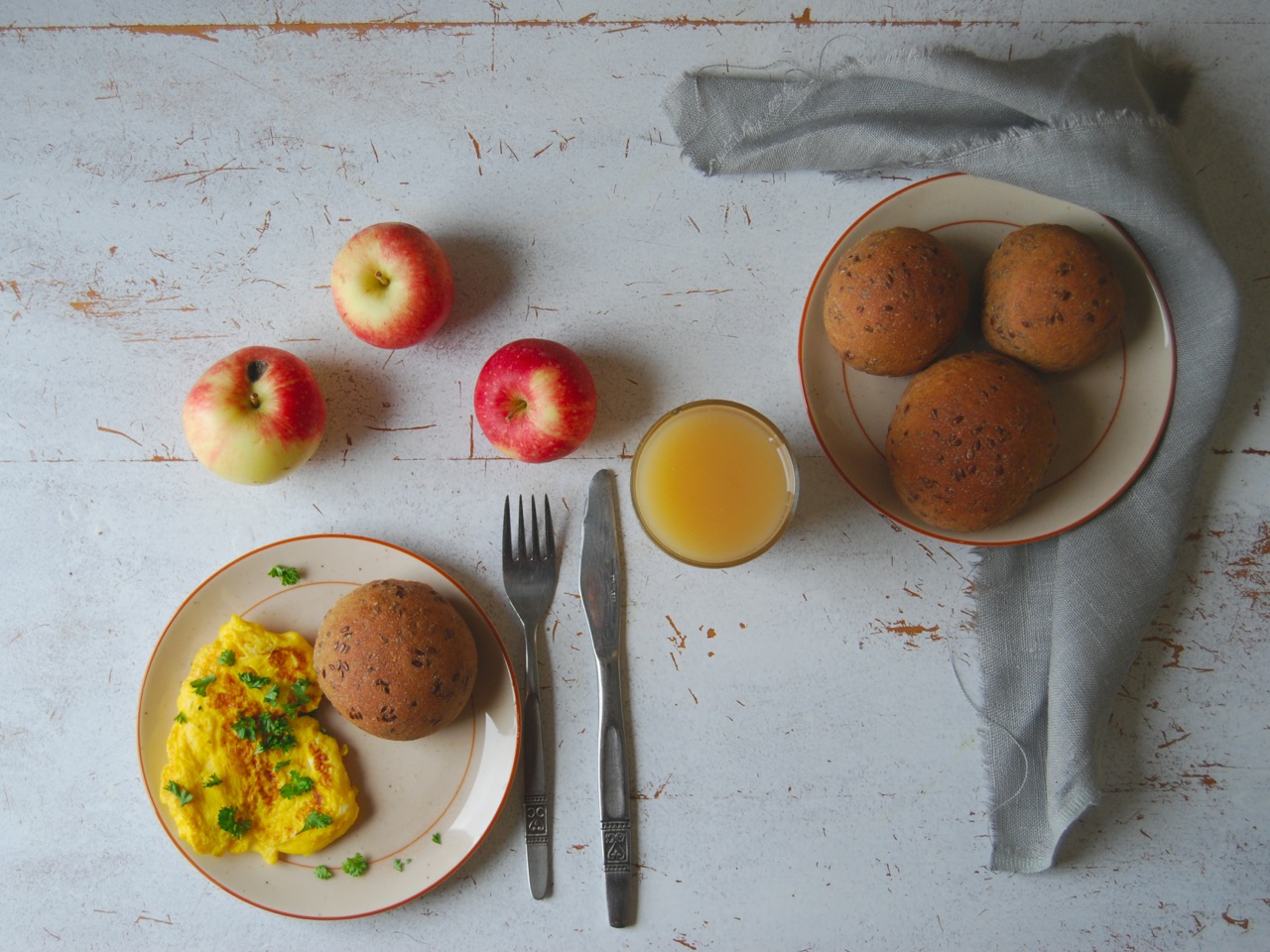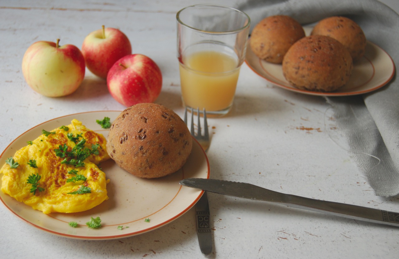 Etter ei himla lang veke var det ekstra godt med varme, mjuke rundstykker til formiddagsmat. Desse er med speltmjøl og linfrø, for å få brukt opp mjølrester som liksom samlar seg opp i skapa. Greitt å få rydda litt i dei liksom!