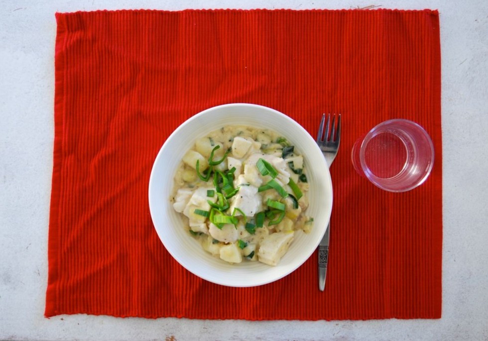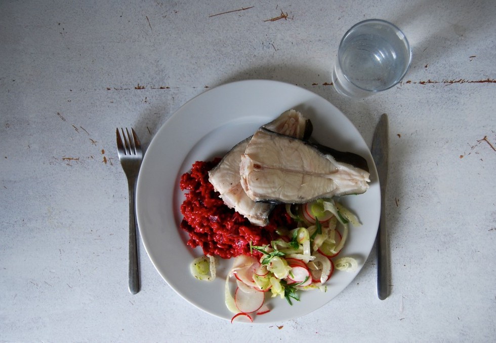 Posjert kveite med rødbetrisotto
